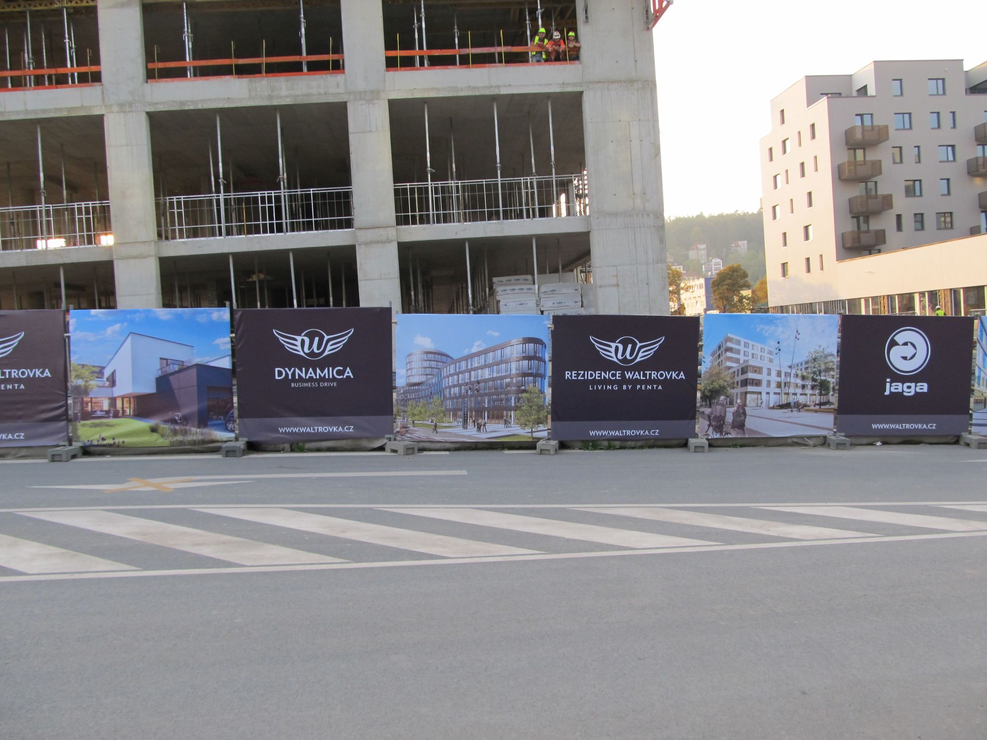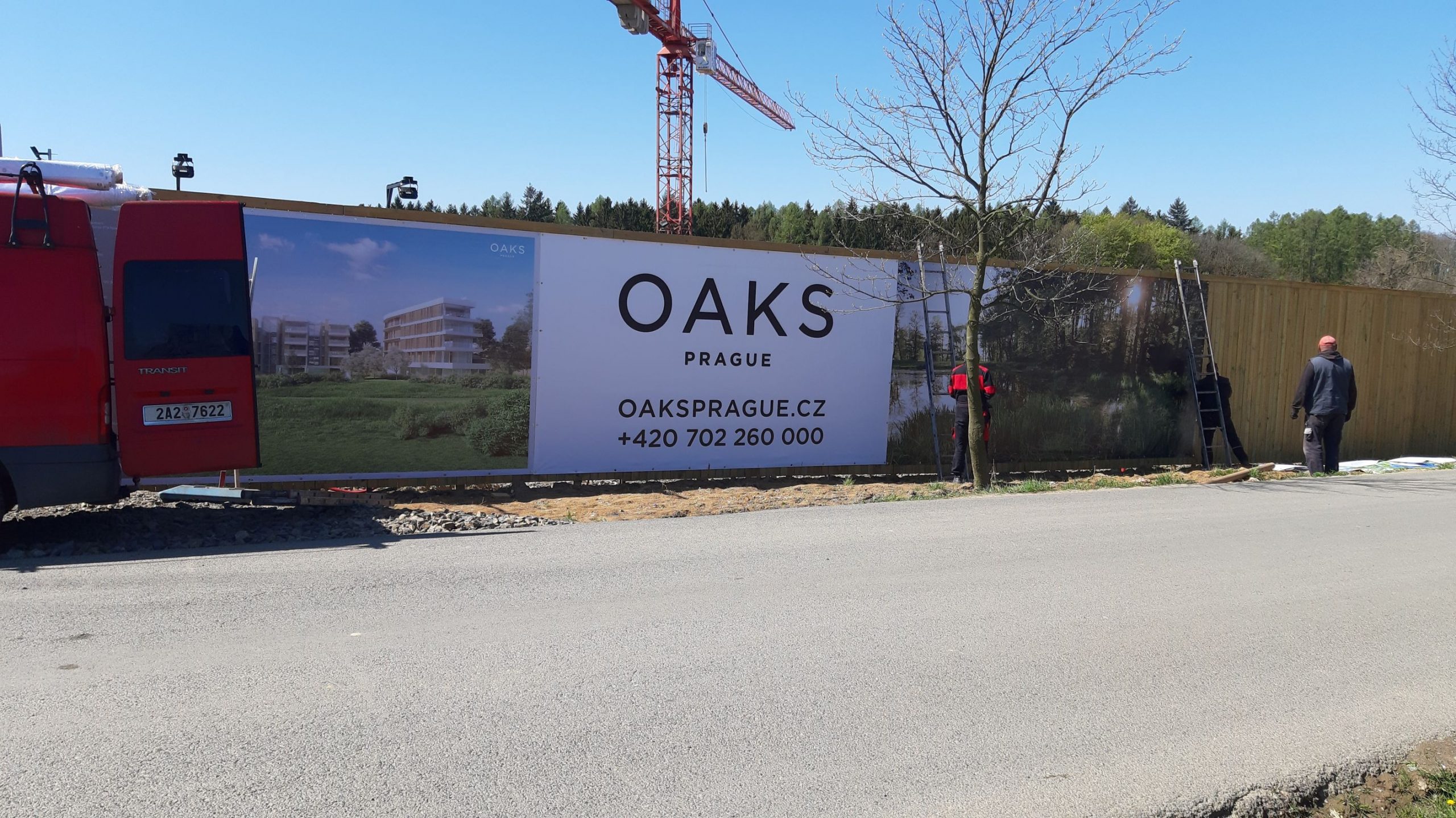 Výroba a instalace reklam na plotové dílce stavebního oplocení a lešení pro developery